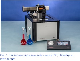 Определение низкого и сверхнизкого значений межфазного натяжения привлекает все большее внимание в связи с важностью применения, например, для повышения нефтеотдачи и разработки новых ПАВ. Как известно, межфазное натяжение жидкостей может быть определено путем оптического анализа формы капли методом висящей капли или с помощью тензиометра с пластиной Вильгельми или кольцом Дю-Нуи. Однако, низкое межфазное натяжение не может быть корректно измерено с помощью этих методов. Для определения от низких до сверхнизких значений межфазного натяжения между жидкостями DataPhysics Instruments разработала тензиометры вращающейся капли SVT (рис. 1), которые гарантируют эффективную процедуру измерения, а также высокую точность и воспроизводимость результатов измерений.