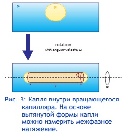 вращающегося капилляра, заполненного другой жидкостью (тяжелой фазой). За счет
