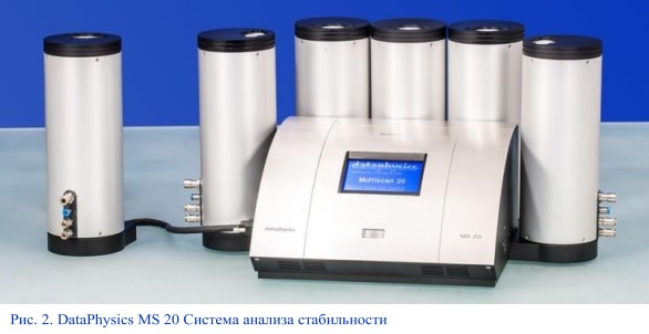 Процессы разделения являются одной из ключевых задач, возникающих при разработке продукта, и требуют тщательной оптимизации стабильности. Даже малейшие изменения в дисперсиях могут быть выявлены и оценены с помощью MultiScan 20 (MS 20) (см. Рис. 2) с программным обеспечением MSC, разработанным DataPhysics Instruments.